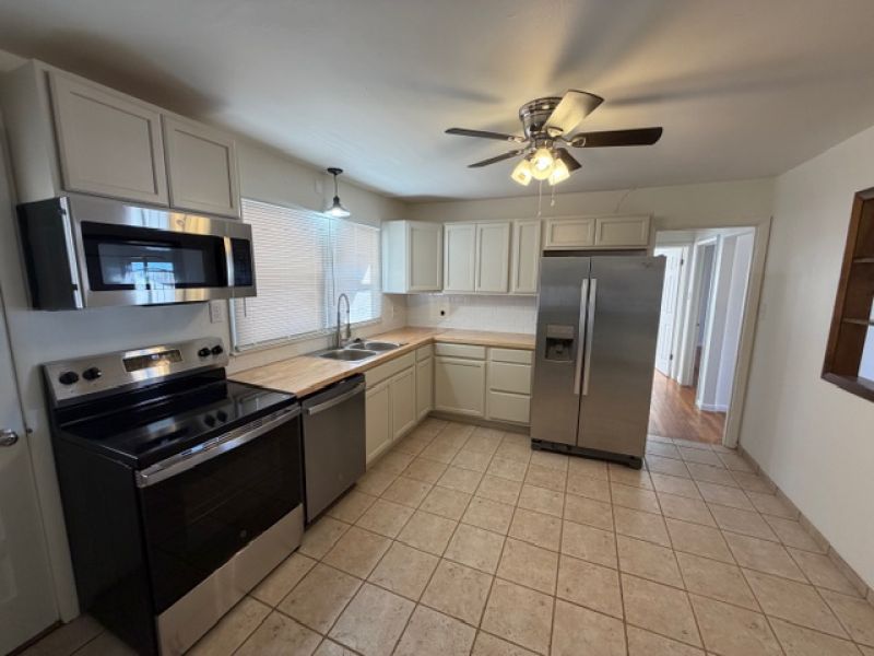 Charming ranch home completely remodeled. This home has 3 spacious bedrooms, 2 bathrooms and a large kitchen with eat in dining. Beautiful hardwood flooring throughout. Large living room with large picture window to let in lots of natural light! Large covered rear patio, detached 2 car garage. Tenant pays all utilities. Yard with automatic sprinkler system.